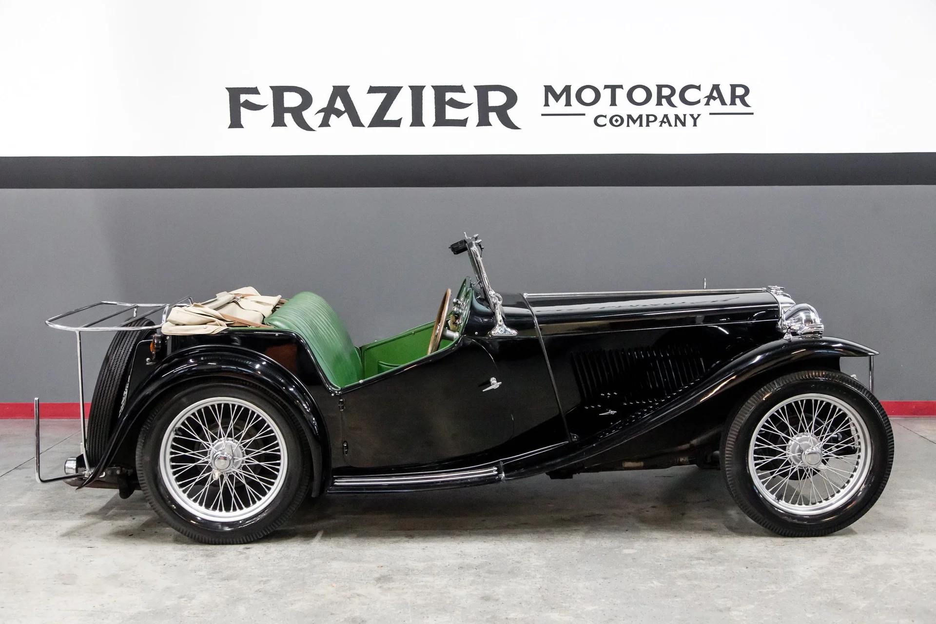 This beautiful black over green MGTC drives as nice as it looks. The car has excellent chrome ,nice leather, carpets, door cards ,and gauges .The paint is as nice as the pictures reflect. The wings are straight with no rust or accident history. The doors are tight ,wood in the tub is solid. The car hails from California and is not a victim of rust or accident history. The car will come with a new top or credit will be given for your choice of color.