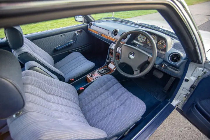 Sold new in October 1984, this 230CE was specified with the classic combination of Astral Silver paintwork contrasted by a blue cloth interior; electric windows front and rear, electric sunroof, front armrest, Becker Mexico and alloy wheels.