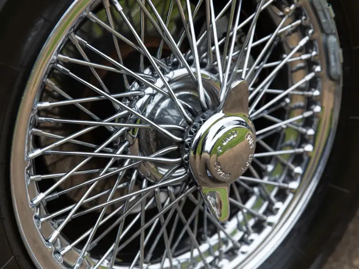 Finished in original build colours of Snow Shadow Grey with Burgundy hide interior and fitted with Chromed wire wheels.