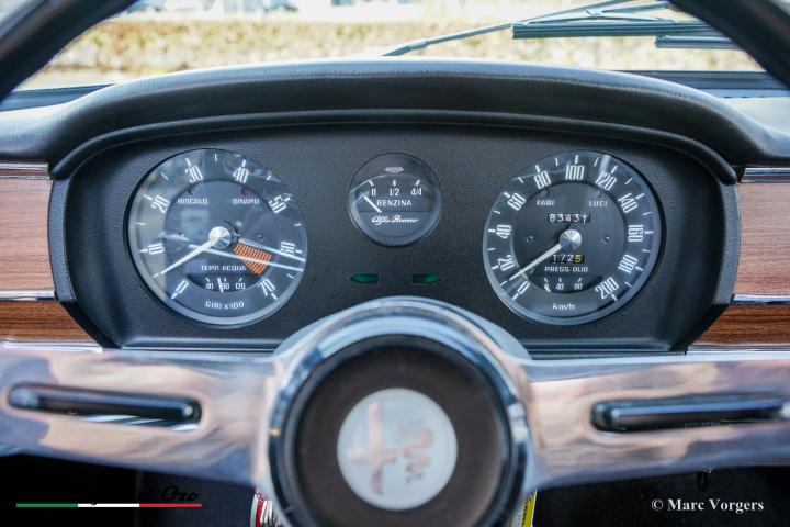 Deze prachtige Alfa Romeo Giulia verkeert in een schitterende en zeer goede originele staat. De carrosserie is in het verleden prachtig overgespoten in de originele kleur. Het interieur is volledig origineel en in zeer goede staat met slechts lichte gebruikssporen.