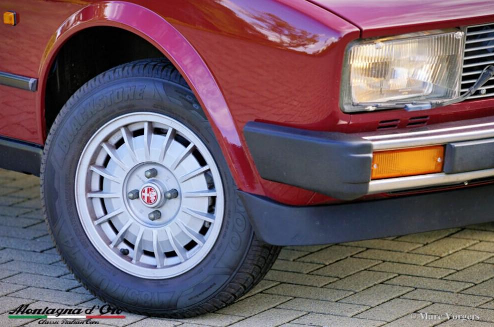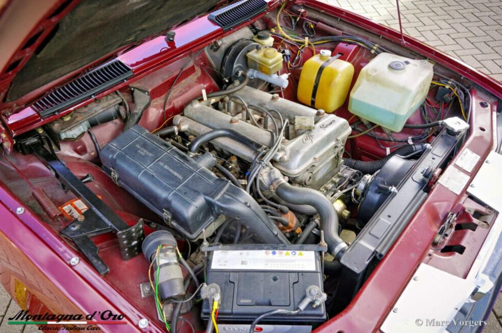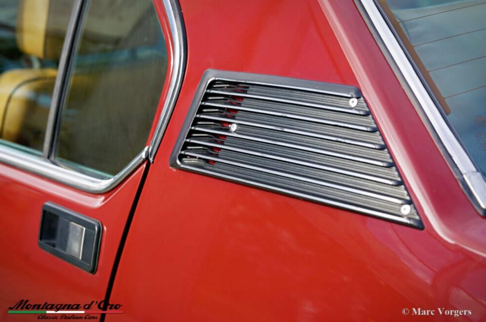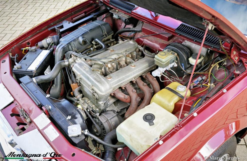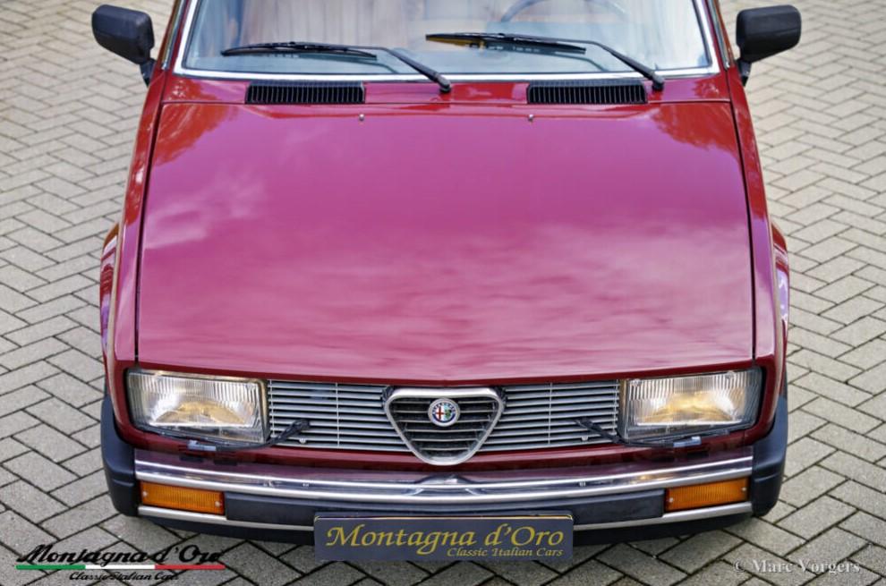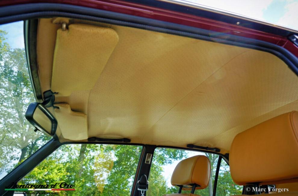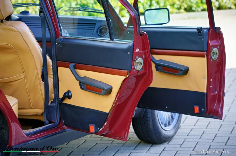 Kleur donkerrood (Rosso Veneziano AR 537) gecombineerd met een lichtbruin lederen interieur, lichtbruin tapijt en zwarte beschermmatten. Deze Alfa Romeo Alfetta 2000 ‘Trintignant’ is een speciale gelimiteerde editie waarvan er slechts 100 zijn gebouwd.