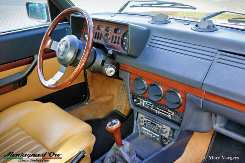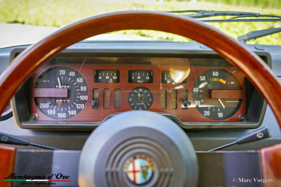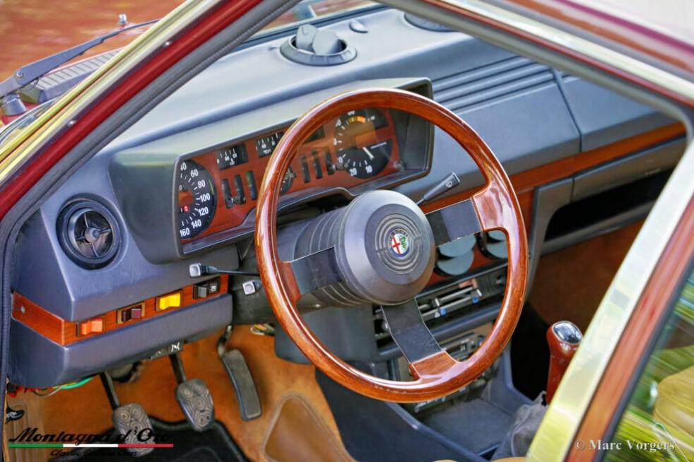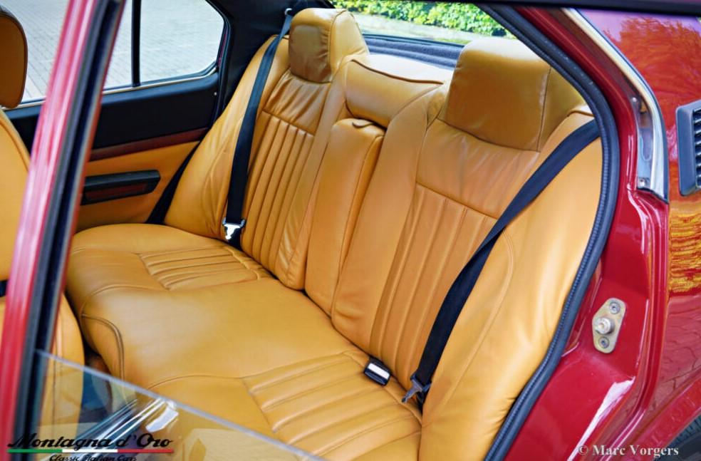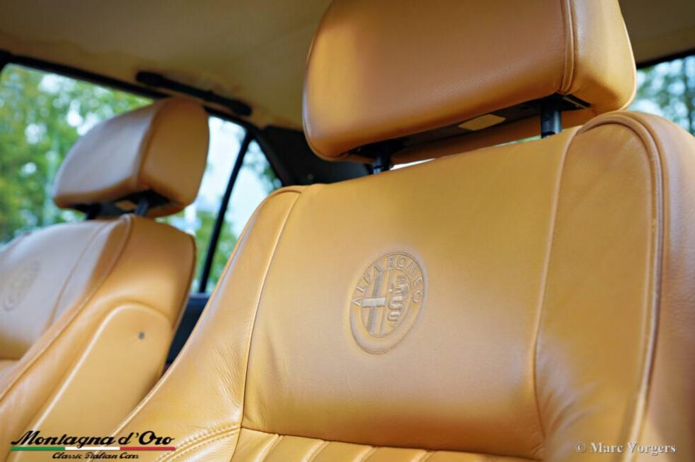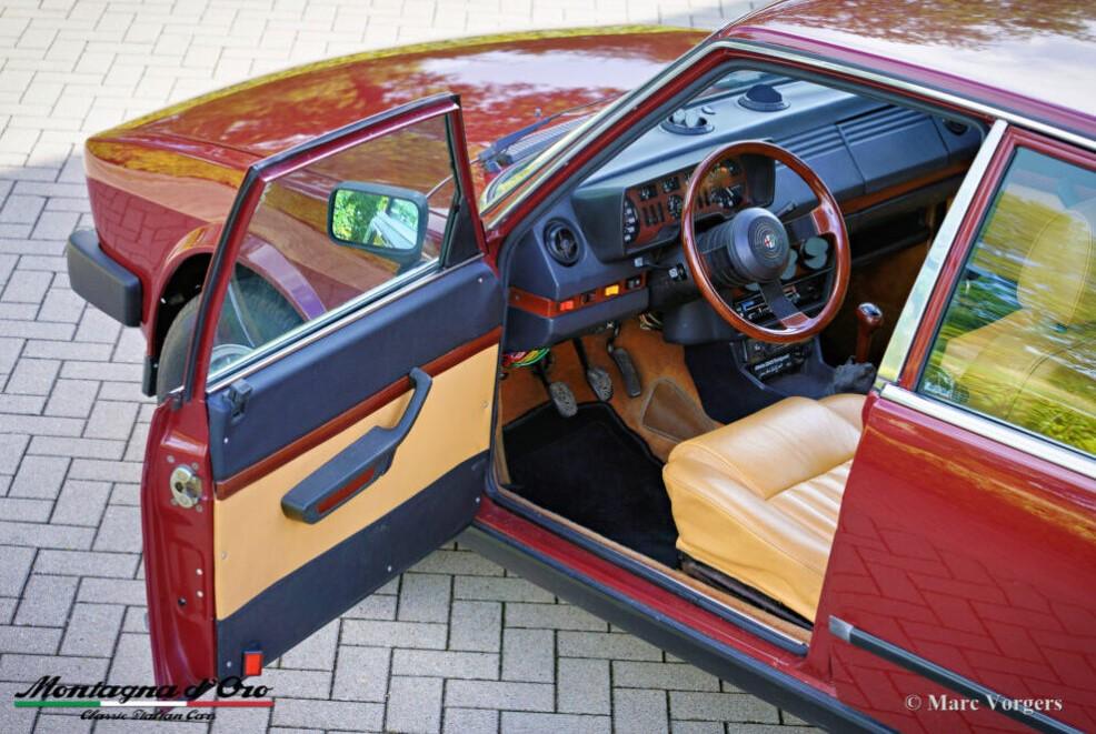 Tijdens de restauratie zijn de originele voorstoelen en achterbank vervangen door lederen stoelen uit een alfa Romeo 156. De kilometerteller staat momenteel op 32.778 kilometer.De Alfa Romeo Alfetta is een van de best uitgebalanceerde en bestrijdende sportieve 4-deurs sedans uit de jaren 70 en 80. De lay-out met voorin geplaatste motor en transaxle-versnellingsbak bij de achteras zorgt ervoor dat de Alfetta een bijna ideale gewichtsverdeling heeft.