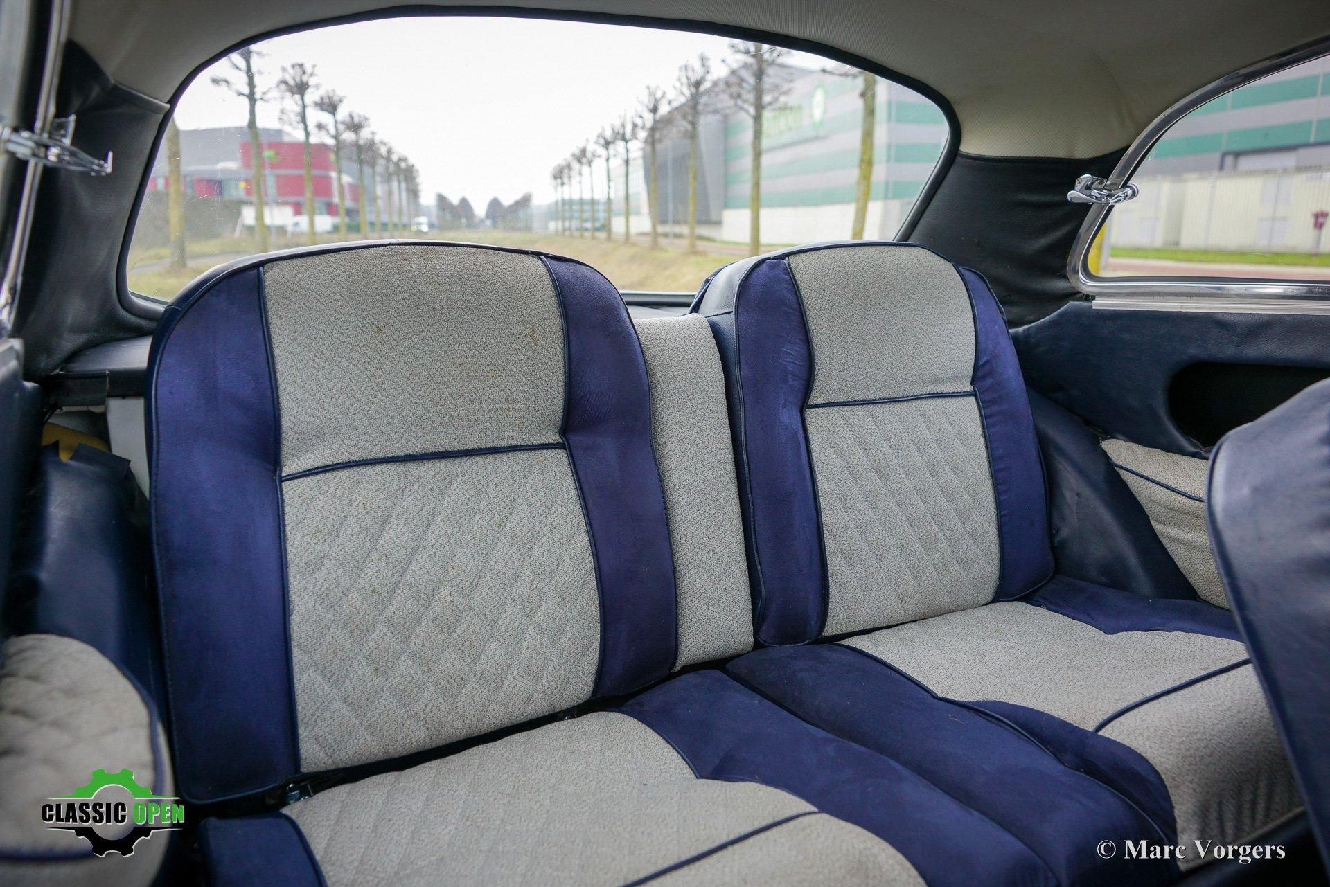 Ook het interieur is opnieuw bekleed. De 1570 cc ‘twin-cam’ viercilindermotor, de vijfversnellingsbak, de koppeling en de remmen (trommelremmen rondom) functioneren perfect.