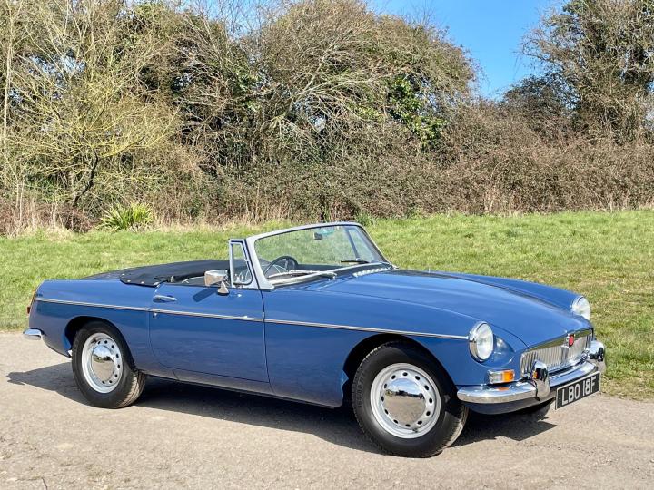 CONCOURS”67”5 SPEED GEARBOX. Fully Restored Roadster.Full Nut and Bolt Restoration in 2011 over a 3 year period.Built to Prize Winning Concours Condition original to its 1967 early build specification 1,700 miles since,With only some 50,000 miles previously covered from New in 1967.Very Recently fitted with the fantastic upgrade Ford Type 9 Five Speed Gearbox as a recommended upgrade by MG Owners Club And Servo dual circuit Brakes ,absolutely superb to drive.Part of a private collection this beautiful example of one of the best Collectable Classic Years to own has been Built to its exacting 1967 Factory Specification to the finest quality and would cost you today some £60,000+ and a wait of over a year to have built.The detail is exquisite,even to the Original Rare Factory Fitted Sports Steel wheels and correct Alluminium Bonnet,in immaculate Mineral Blue Paintwork,superb Chrome throughout with beautiful Fine hide Blue leather seats and all interior completely restored.New Hood.Show Winning Engine Bay has had the Original Engine Professionally Re Built to Fast Road Specification,Incl performance camshaft,Upgraded Correct Twin SU Carburettors,performance Manifold and Exhaust System ,Electronic Ignition,all to benefit the wonderful drive on our modern roads.The list is endless,fully documented in its huge History file,together with CD Rom of the Build and it’s Original Passport to Service Document from its Suppling Dealer in 1967.Comes fully Serviced and will come with a New MOT,tho it is an Historic Tax and MOT Exempt Classic Vehicle.If you are looking for the absolute Top Top unmolested early 1967 Spec MGB Roadster to cherish and enjoy,Built to Investment Standard then this is the one to come and see,you won’t be disappointed,please don’t miss it.He will be
